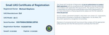 Drone Reg Number: FA3X3KFT73W